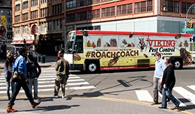 The Roach Coaches design encourages pedestrians to take a picture of the bus and tweet their pics to @vikingpest with their picture of the #roachcoach for a chance to win $100. “We took a chance and surprisingly in just a few days we have already received several tweets and interactions with our customers,” Bradbury added.