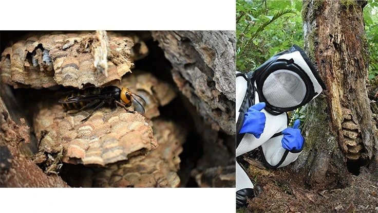 The nest was located in the base of a dead alder tree in rural Whatcom County, east of Blaine. It was located about two miles from a nest that WSDA eradicated last October and about one-quarter mile from where a resident reported a live sighting of an Asian giant hornet on Aug. 11. The site was about one-quarter mile from the Canadian border.