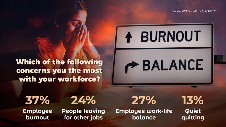 More than 60 percent of those who responded said employee burnout (37 percent) and employee work-life balance (27 percent) were their greatest concerns.