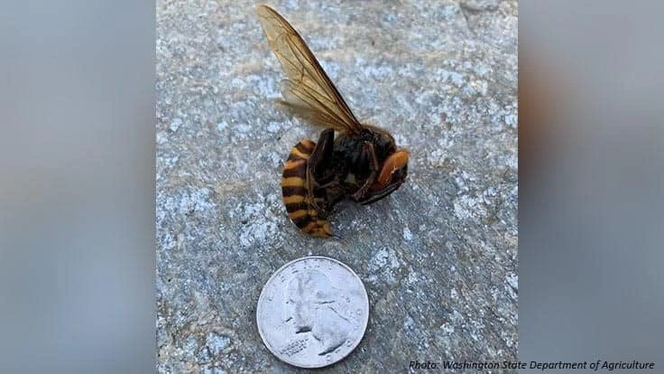 Asian giant hornets, an invasive pest not native to the U.S., are the world’s largest hornet and a predator of honey bees and other insects. A small group of Asian giant hornets can kill an entire honey bee hive in a matter of hours.
