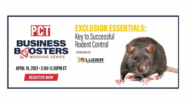 Description: Register today for the free webinar, Exclusion Essentials: Key to Successful Rodent Control, part of the PCT Business Booster series, and hear from renowned rodent expert Matt Frye, extension educator at NYS IPM, as he discusses the secrets to preventing rodent problems before they begin. Taking place on Wednesday, April 14, from 2- 3:30 pm EDT, this event is your chance to learn the secrets to preventing rodent problems before they begin by incorporating time-tested exclusion techniques into your rodent control program.