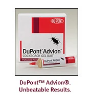 DuPont ADVION COCKROACH GEL BAIT is designed to control pest species of cockroaches. The slight delay in mortality is caused by the active ingredient, indoxacarb, which allows cockroaches to consume the bait and return to the harborage site to contaminate other cockroaches, which reduces infestation levels.