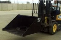 Turns a forklift into a loader Installation is quick and easy Capacity is ideal for landscape supply companies Heavy-duty construction Bucket can be tripped with the dumping handle or remote rope release at operator's seat
