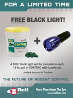 For a limited time, free black lights will be included in all 18 pound pails of Contrac with Lumitrack — available from Bell Laboratories distributors.