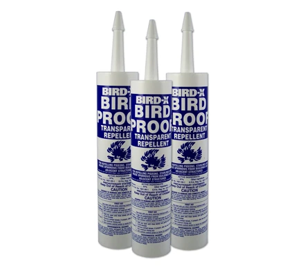Although it is non-toxic and non-lethal, one application of BIRD-X BIRD PROOF GEL will drive off infesting birds and protect property for one year or longer. It can be used in any weather on almost any surface, indoors or outdoors.