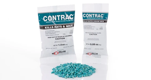 CONTRAC is a single-feeding anticoagulant bait, in either pellet or meal form, with superior acceptance by rodents. CONTRAC contains the active ingredient Bromadiolone, which controls Warfarin-resistant rats. Though rodents may consume a lethal dose in one feeding, bait shyness is not a problem because mortality occurs a few days after consumption. Also CONTRAC is less toxic to non-target animals in both primary and secondary poisoning situations than other single-feeding baits. An antidote, Vitamin K1, is readily available and there is a time factor for treatment.