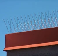 Nixalite of America Inc introduces its newest design, E-spike 6405. E-spike is an all stainless steel economy bird spike that is 6” wide and available in 24” or 48” strip lengths to speed installation time. The new E-spike is available in a stainless steel finish or 8 standard ColorCoat colors and you have your choice of pointed or soft tip spikes. There are several options available for installing e-spike including adhesive, stainless steel hardware, glue clips, gutter straps, ridge caps or custom installation brackets available from Nixalite. E-spike will cover up to a 7” surface with a single row and the flexible base follows curves and can be quickly cut to the desired length.