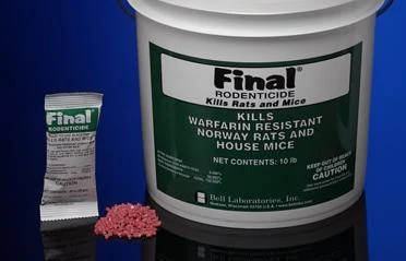 FINAL RODENTICIDE is a powerful single-feeding anticoagulant with the active ingredient Brodifacoum. FINAL is more palatable than other Brodifacoum baits on the market and is especially successful in cleaning out tough mouse infestations