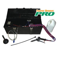 Rockwell Labs Ltd introduces the new Foamer Simpson Pro. The Foamer Simpson Pro is a powerful electric foamer that produces high volumes of rich, thick foam. The Foamer Simpson Pro uses the same patented double hose technology as the Foamer Simpson to produce the best foam on the market. The handy “tool box” design allows the entire unit to be conveniently carried and packed away when not in use. Like the Foamer Simpson, there is a needle valve installed that allows regulation of the air flow for wetter or drier foam. Perfect for treating large facilities such as food plants with InVade Bio Foam, the FS Pro also works great for foaming pesticides into wall voids and other areas. The unit comes complete with an 18” extension wand for pushing foam deep into drains and uses 120V AC power.