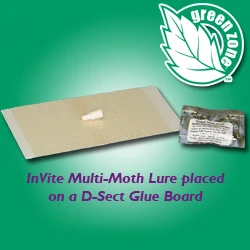 InVite (TM) multi-moth lure is a rubberized material impregnated with moth pheromones which is gradually released over time. It is designed to be used in the D-Sect Station fitted with a glueboard.