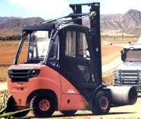 • Linde Load Control System features an adjustable armrest and fingertip-actuated hydraulic control levers