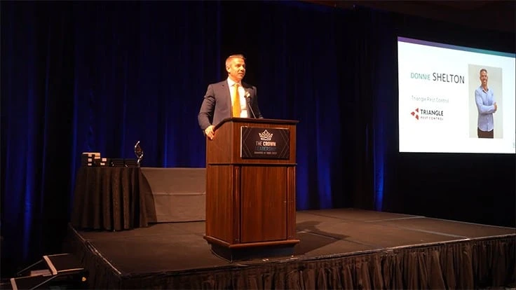 Donnie Shelton, owner/CEO, Triangle Pest Control and Coalmarch, was recognized by PCT and Syngenta as a 2021 Crown Leadership Award honoree at NPMA PestWorld 2021 in Las Vegas.